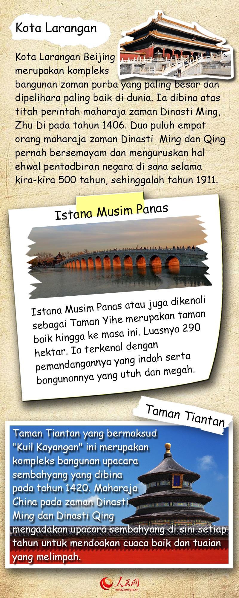 Di Beijing, anda boleh bersiar-siar dengan santai melalui tapak bersejarah dan mengikut jejak langkah seorang maharaja untuk merasai suasana keagungan, dan menikmati keindahan kesenian empayar.