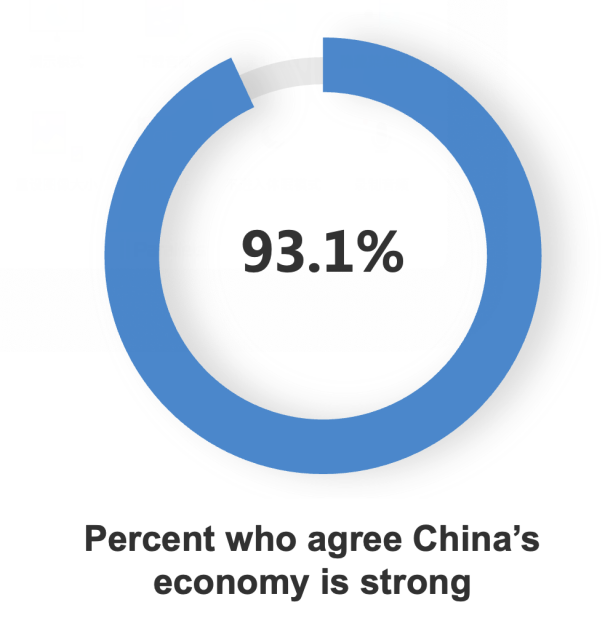 Satu tinjauan pendapat umum yang dijalankan oleh CGTN di bawah Kumpulan Media China (CMG) dan Universiti Renmin China (RUC) menerusi Institut Penyelidikan Komunikasi Antarabangsa Era Baru di persada global mendedahkan bahawa 93.1% responden menyanjung tinggi ekonomi China yang kuat dan berpotensi, dan berpendapat bahawa ekonomi China yang kental dan akomodatif pada masa akan datang pastinya akan menyuntik keyakinan dan tenaga kepada ekonomi dunia yang dilihat masih lemah dalam pemulihan.