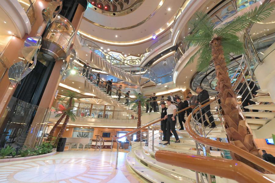 | Gambar yang diambil pada 6 Mac 2024 ini memaparkan pemandangan bahagian dalam kapal persiaran “Dream” di Pingtan, provinsi Fujian, tenggara China. (Xinhua/Lin Shanchuan) |