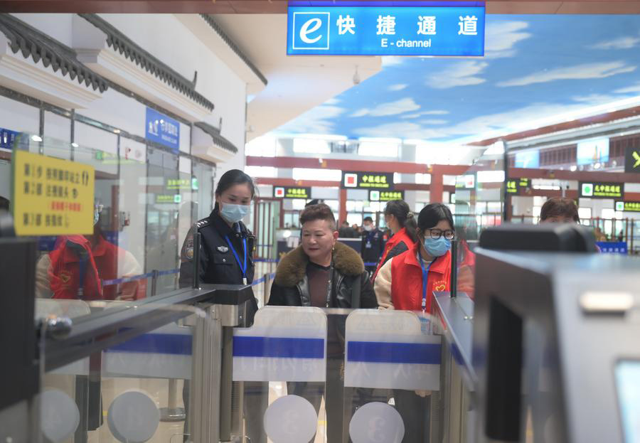 | Seorang pelancong menyerahkan butiran diri untuk pemeriksaan menerusi lorong elektronik di pusat pelayaran persiaran antarabangsa Pingtan, provinsi Fujian, tenggara China, 6 Mac 2024. (Xinhua/Lin Shanchuan) |
