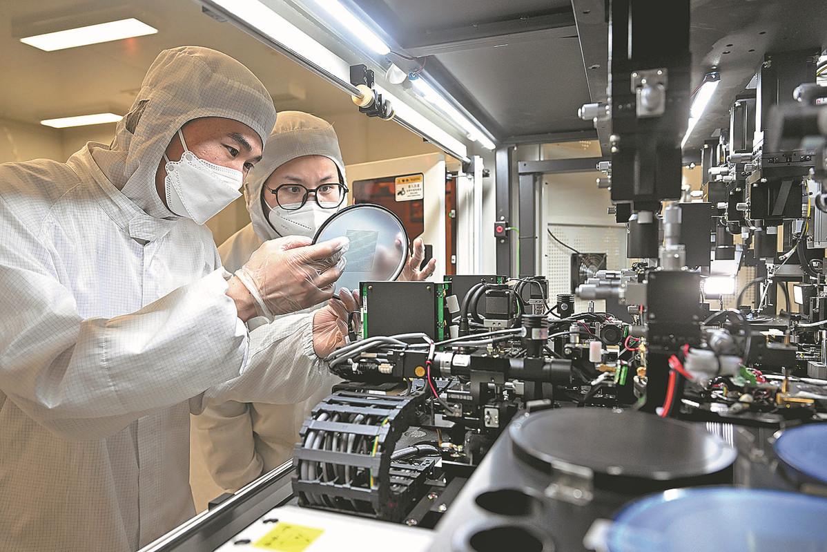 Pekerja menguji cip di sebuah kilang elektronik di daerah Luquan, Shijiazhuang, provinsi Hebei, pada bulan lepas. (foto/China Daily)
