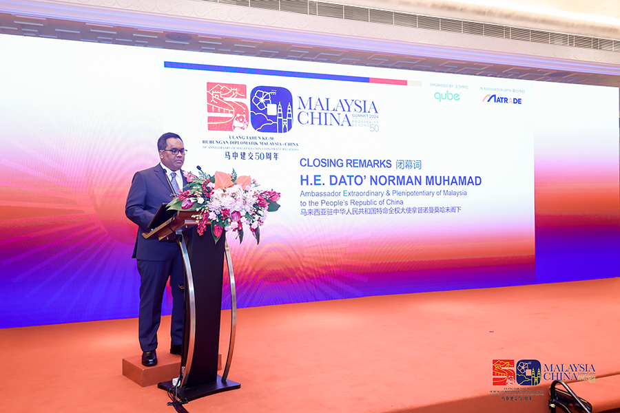 Duta Besar Malaysia ke China, Datuk Norman Muhamad menyampaikan ucapan perasmian Sesi Perangkaian Sidang Kemuncak Malaysia-China 2024 (MCS 2024) di Beijing pada Rabu. MCS 2024 dijadualkan berlangsung pada 17 hingga 19 Disember nanti di Pusat Perdagangan dan Pameran Antarabangsa Malaysia di Kuala Lumpur. (Foto ihsan Qube Integrated Malaysia Sdn Bhd)