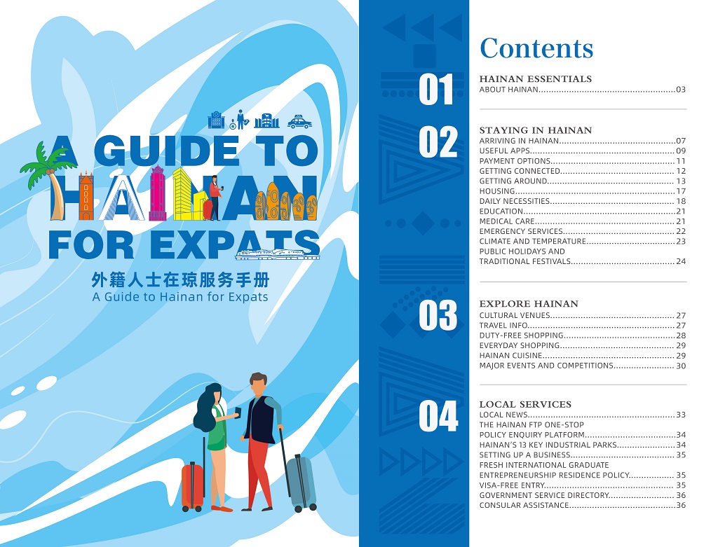 Dihasilkan oleh Pejabat Hal Ehwal Luar Provinsi Hainan, “Panduan Hainan untuk Ekspatriat” merupakan cetakan bergambar yang memberikan maklumat secara praktikal terhadap pelbagai aspek kehidupan di Hainan.