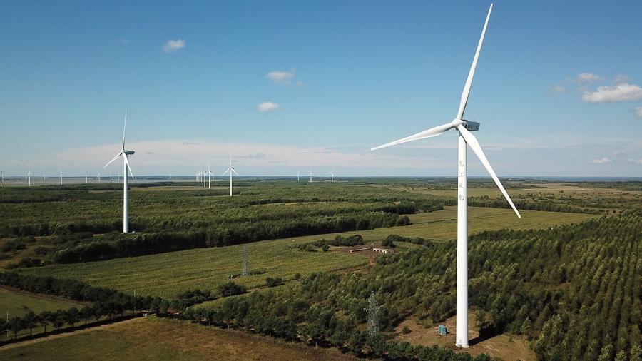 | Foto udara ini yang diambil pada 8 September 2021 menunjukkan pertanian bantuan angin di Bandar Daqing, Wilayah Heilongjiang di timur laut China. (Xinhua/Wang Jianwei) |