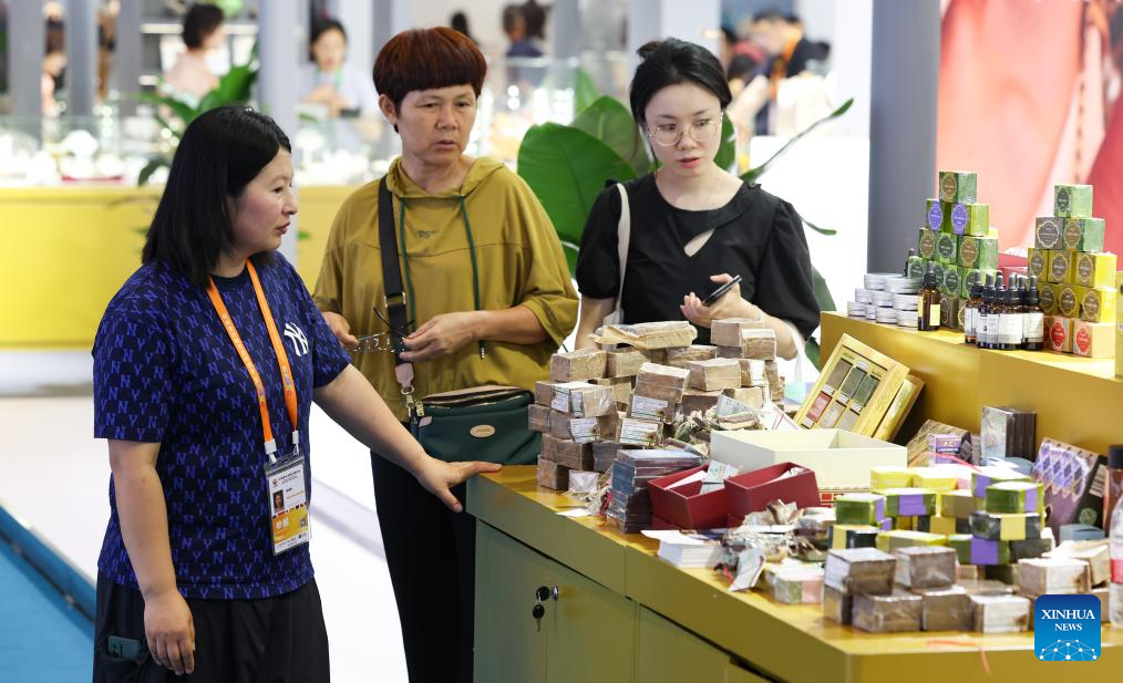 | Pengunjung melihat produk-produk dari Vietnam pada Ekspo Produk Pengguna Antarabangsa China (CICPE) keempat di Haikou, ibu kota Provinsi Hainan, di selatan China. Berlangsung dari 13 hingga 18 April, ekspo yang bertemakan “Kongsi Peluang Terbuka, Bersama Bina Kehidupan Lebih Baik” itu menarik penyertaan banyak syarikat dari negara-negara terlibat Inisiatif Jalur dan Laluan (BRI). (Xinhua/Yang Guanyu) |