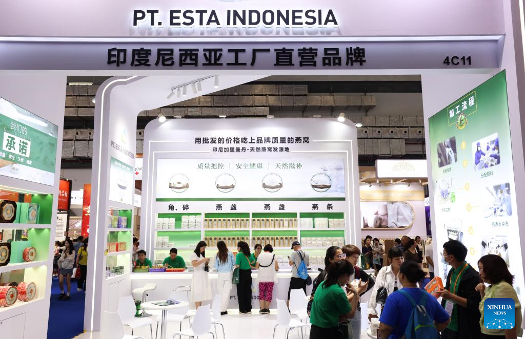 | Pengunjung melihat produk-produk dari Indonesia pada Ekspo Produk Pengguna Antarabangsa China (CICPE) keempat di Haikou, ibu kota Provinsi Hainan, di selatan China. Berlangsung dari 13 hingga 18 April, ekspo yang bertemakan “Kongsi Peluang Terbuka, Bersama Bina Kehidupan Lebih Baik” itu menarik penyertaan banyak syarikat dari negara-negara terlibat Inisiatif Jalur dan Laluan (BRI). (Xinhua/Yang Guanyu) |