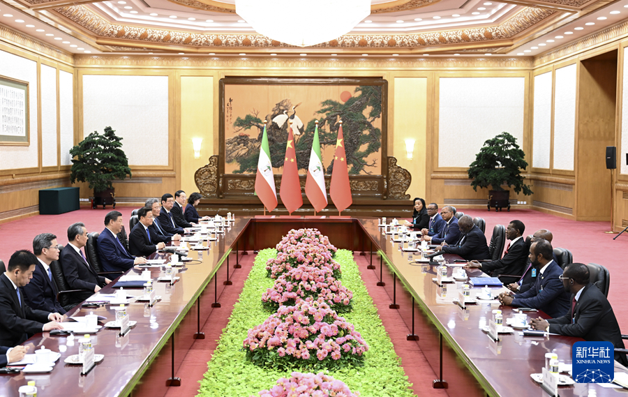 Xi menyatakan bahawa China menyokong Equatorial Guinea mendorong pembangunan ekonomi yang pelbagai dan pengindustrian, bersedia meningkatkan penyelarasan antara pelaksanaan Inisiatif Jalur dan Laluan (BRI) dengan pelaksanaan Agenda Pembanguan Ekonomi dan Sosial Equatorial Guinea 2035 berdasarkan hasil yang dicapai dalam Forum Kerjasama China-Afrika, mendorong pelbagai sektor meningkatkan kualiti dan keberkesanan dalam kerjasama bilateral, menggalakkan syarikat domestik yang berprestij melabur dan mengembangkan urus niaga di Equatorial Guinea, dan sudi berkongsi pengalaman dengan negara itu dalam sektor pertanian dan pembangunan desa malah meneruskan program bantuan teknologi pertanian.