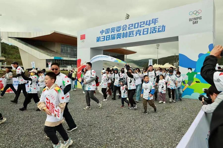 Penduduk dari Zhangjiakou, Provinsi Hebei menyertai acara larian ria sempena Hari Olimpik pada 23 Jun, 2024. (foto/Xinhua)