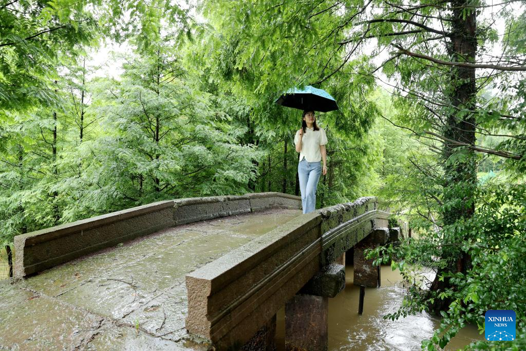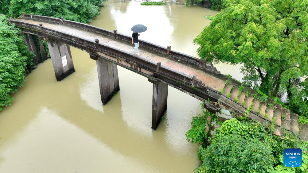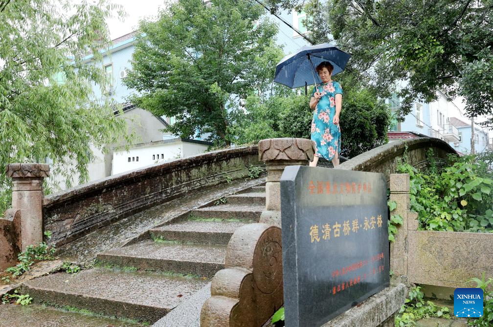 | Seorang wanita berjalan di Jambatan Jianji di Kampung Longsheng di Kaunti Deqing, provinsi Zhejiang, di timur China, 27 Jun 2024. Kaunti Deqing adalah asal usul kepada tujuh jambatan batu purba yang disenaraikan sebagai tapak warisan budaya utama di bawah perlindungan peringkat negeri. Beberapa tahun mutakhir ini, kaunti ini bergiat aktif dalam perlindungan dan pengubahsuaian jambatan batu purba, sambil menggalakkan penyepaduan sumber warisannya dengan pelancongan budaya dan penyelidikan. (Foto Xie Shangguo/Xinhua) |