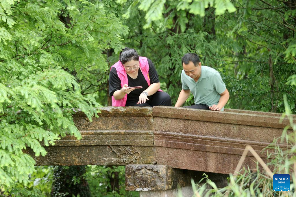 | Orang ramai melawat Jambatan Puji di Kampung Lishan di Bandar Zhongguan, Kaunti Deqing, provinsi Zhejiang, di timur China pada 24 Jun 2024. Kaunti Deqing adalah asal usul kepada tujuh jambatan batu purba yang disenaraikan sebagai tapak warisan budaya utama di bawah perlindungan peringkat negeri. Beberapa tahun mutakhir ini, kaunti ini bergiat aktif dalam perlindungan dan pengubahsuaian jambatan batu purba, sambil menggalakkan penyepaduan sumber warisannya dengan pelancongan budaya dan penyelidikan. (Foto Xie Shangguo/Xinhua) |