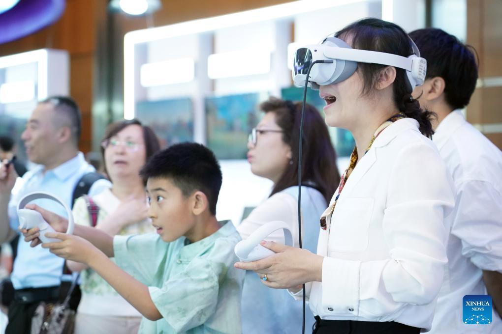 | Seorang pelawat (depan sekali) mencuba peranti VR semasa Persidangan Global Digital Economy 2024 (GDEC 2024) di Beijing, ibu negara China, 2 Julai 2024. Bertemakan "Membuka Era Baru Kecerdasan Digital, Berkongsi Masa Depan Digital Baharu," GDEC 2024 membuka tirainya pada Selasa dan akan berlangsung hingga 5 Julai. (Foto/Xinhua) |