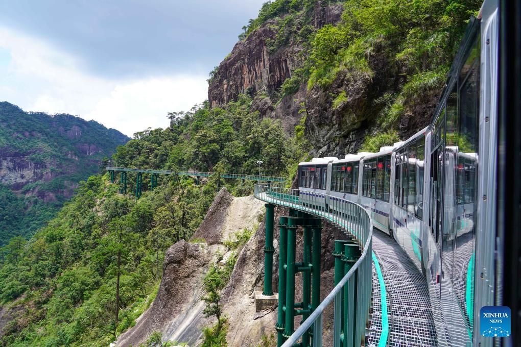 Sekumpulan 30 kereta api unit berbilang elektrik (EMU), yang turut digelar ‘persiaran monorel bertingkat kawasan gunung kereta api dan sistem landasan,’ telah dihantar ke Kawasan Pemandangan Gunung Dajue di Kaunti Zixi, Provinsi Jiangxi di timur China, pada Khamis.
