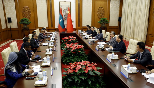 Menteri Luar China Wang Yi bertemu rakan sejawatnya dari Maldives, Moosa Zameer di Beijing pada Isnin.