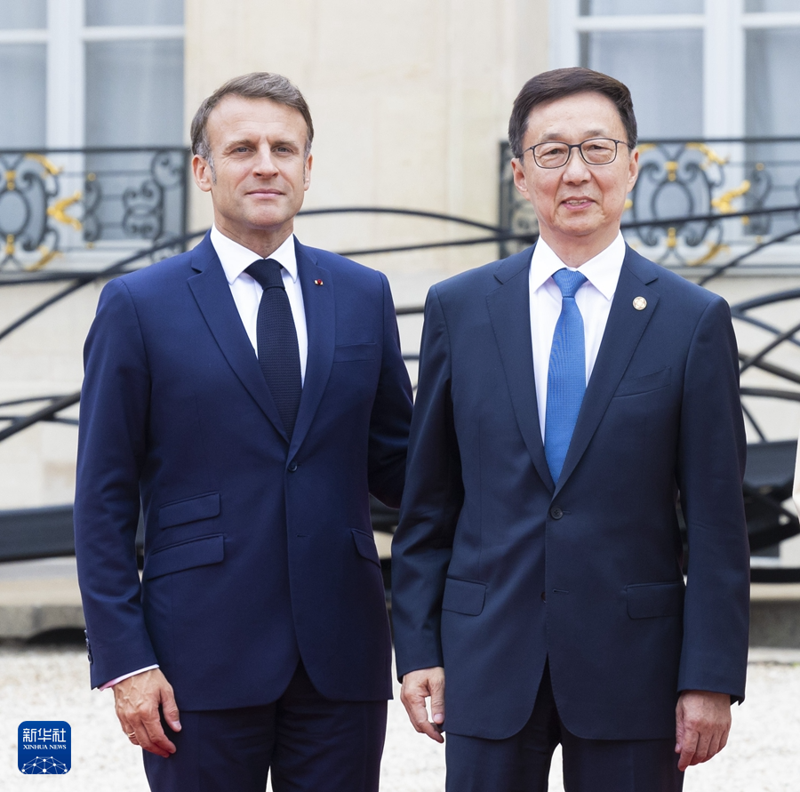 Naib Presiden China Han Zheng bertemu dengan Presiden Perancis Emmanuel Macron di Istana Elysee, Paris pada petang Jumaat.