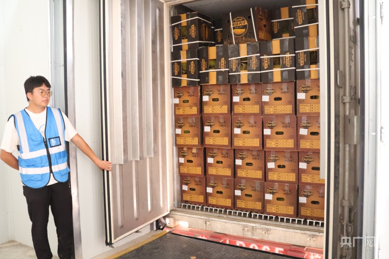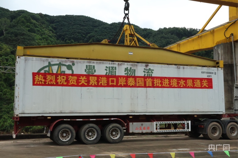 | Kumpulan pertama durian Thailand menjalani pelepasan kastam di Pelabuhan Guanlei. (Foto/CNR) |