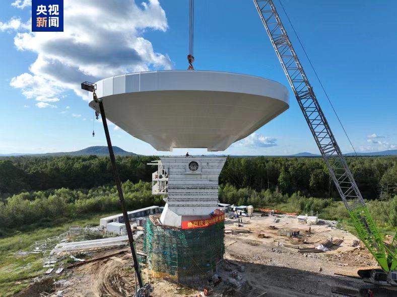 Pemasangan reflektor utama sistem antena pada teleskop radio diameter 40 meter Changbaishan telah diselesaikan pada Selasa.