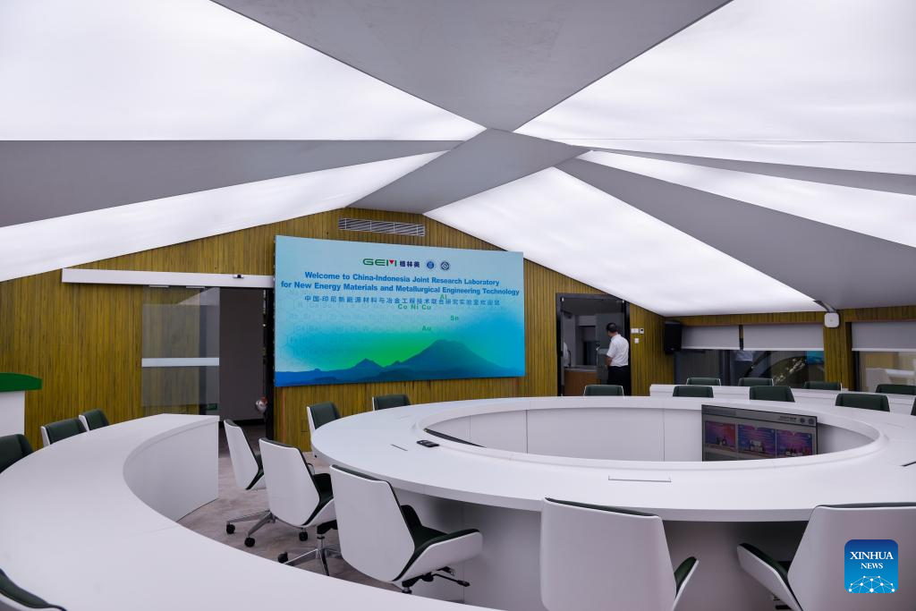 | Foto bertarikh 27 Ogos 2024 ini memperlihatkan bilik mesyuarat Makmal Penyelidikan Bersama China-Indonesia untuk Bahan Tenaga Baharu dan Teknologi Kejuruteraan Kelogaman di Institut Teknologi Bandung, Indonesia, pada 27 Ogos 2024.