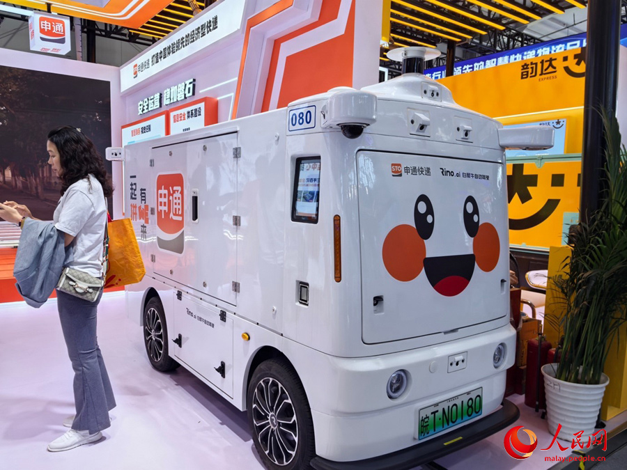| Kenderaan penghantaran tanpa pemandu oleh syarikat STO Express. (People’s Daily Online/Yang Chunyan) |