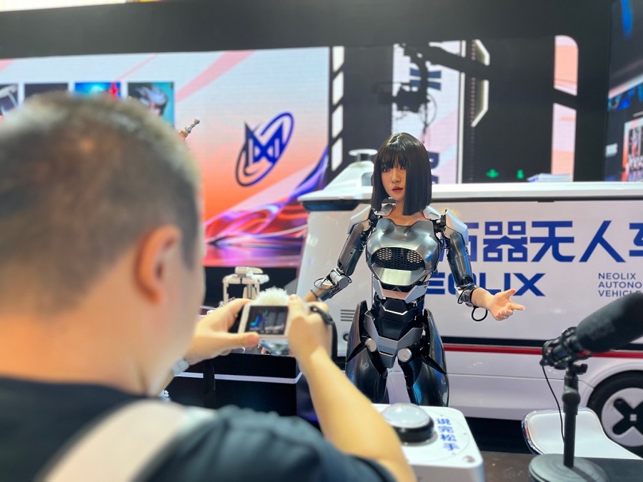 | Foto orang awam mengambil gambar robot kecerdasan buatan (AI) yang sedang berkomunikasi pengunjung pada Pameran Antarabangsa China untuk Perdagangan Perkhidmatan (CIFTIS) 2024 di Pusat Konvensyen dan Pameran Antarabangsa Shougang. (People’s Daily Online/Ahmad Syukri) |