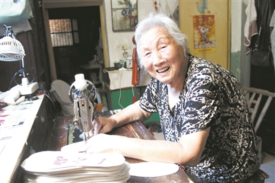 Foto Wang Xiaojuan, seorang nenek yang berusia 89 tahun dari di kaunti Xixia, bandar Nanyang, Provinsi Henan sedang membuat lapik dalam kasut untuk askar baharu.