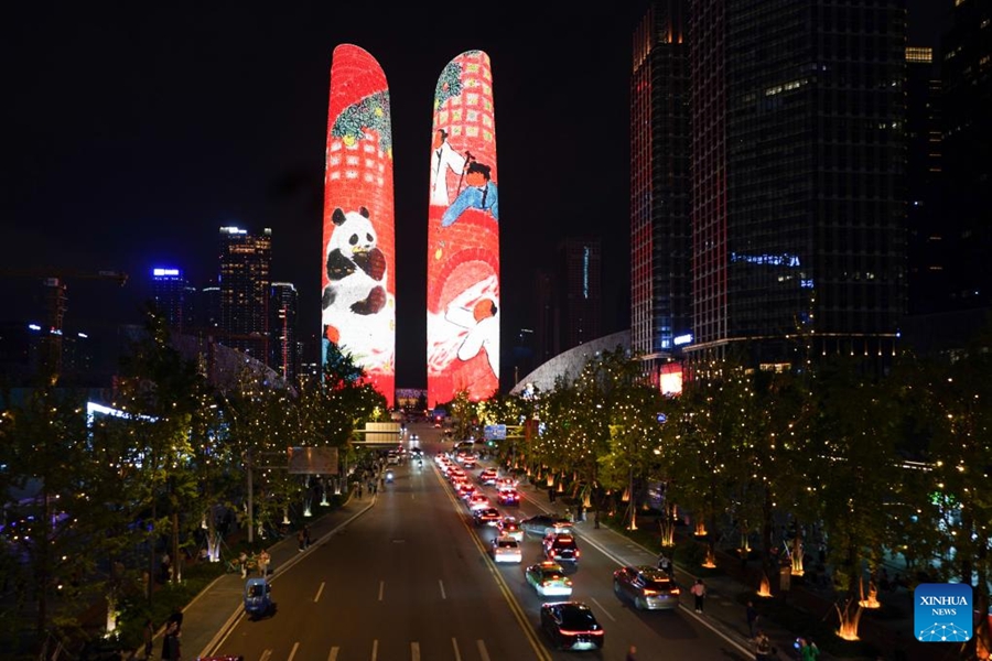 | Foto ini menunjukkan satu pertunjukan lampu di Chengdu, ibu provinsi Sichuan, barat daya China, 1 Oktober 2024. (Foto oleh Xu Bingjie/Xinhua) |
