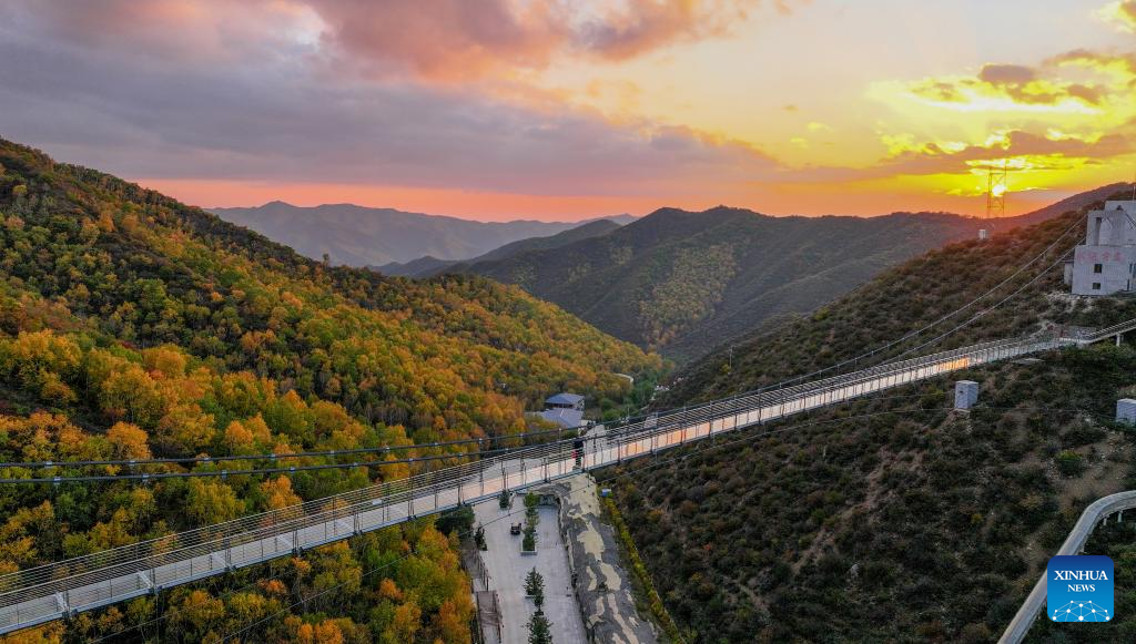 | Pelancong berjalan di jambatan kaca di sebuah tempat peranginan di kaunti Zhuozi, bandar Ulanqab, Wilayah Autonomi Mongolia Dalam, utara China, 6 Oktober 2024. (Xinhua/Lian Zhen) |