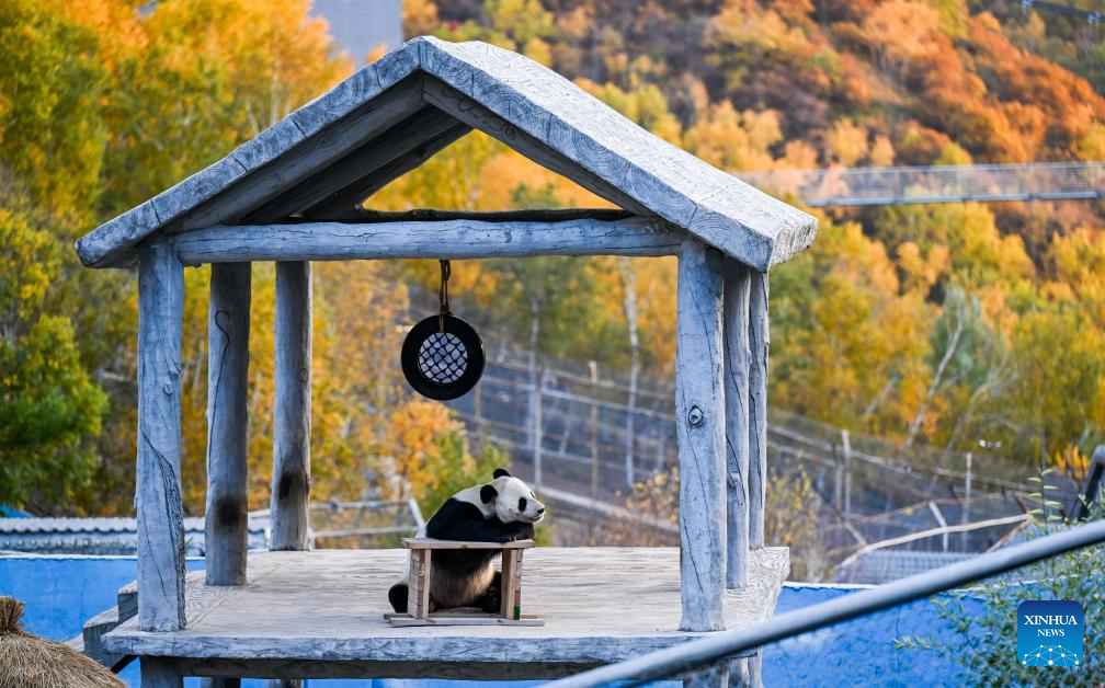 | Seekor panda dapat dilihat di sebuah zoo di kaunti Zhuozi, bandar Ulanqab, Wilayah Autonomi Mongolia Dalam, utara China, 6 Oktober 2024. (Xinhua/Lian Zhen) |