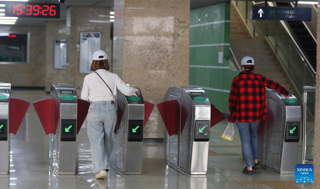 | Penduduk masuk ke stesen rel bertingkat bandar Cat Linh-Ha Dong di Hanoi, Vietnam, 9 Oktober 2024. Rel bertingkat bandar Cat Linh-Ha Dong dibina oleh China Railway Sixth Group sebagai salah satu projek utama di bawah pelan penyelarasan Inisiatif Jalur dan Laluan China dan strategi Dua Koridor Satu Lingkaran Vietnam. (Xinhua/Yao Qilin) |