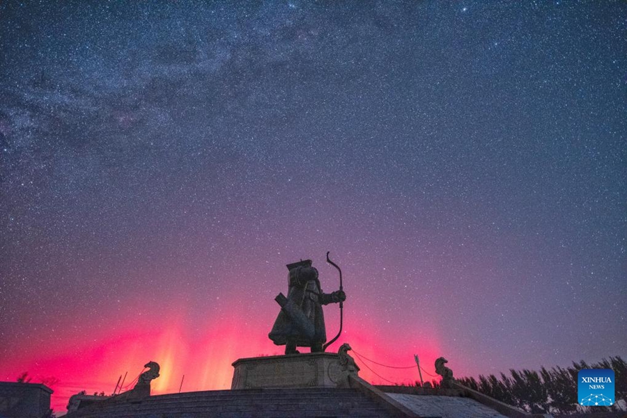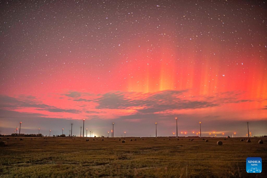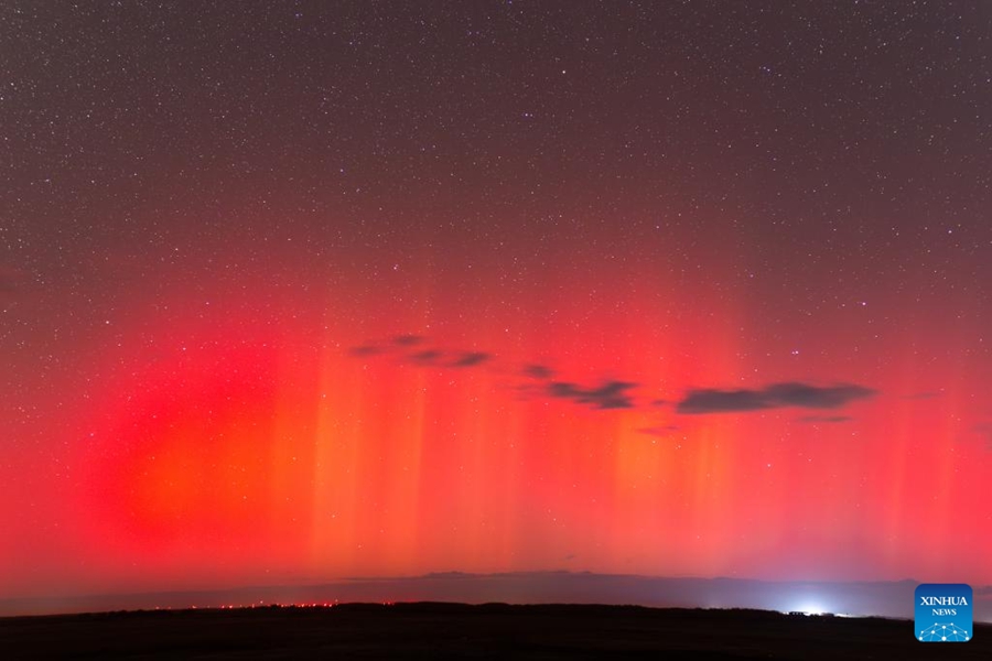 | Foto bertarikh 11 Oktober 2024 ini menunjukkan fenomena cahaya utara di bandar Mudanjiang, provinsi Heilongjiang, timur laut China. (Foto oleh Wang Baoxun/Xinhua) |