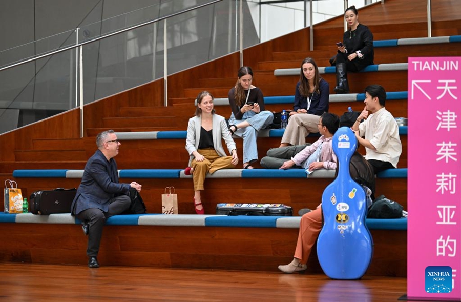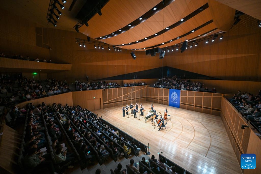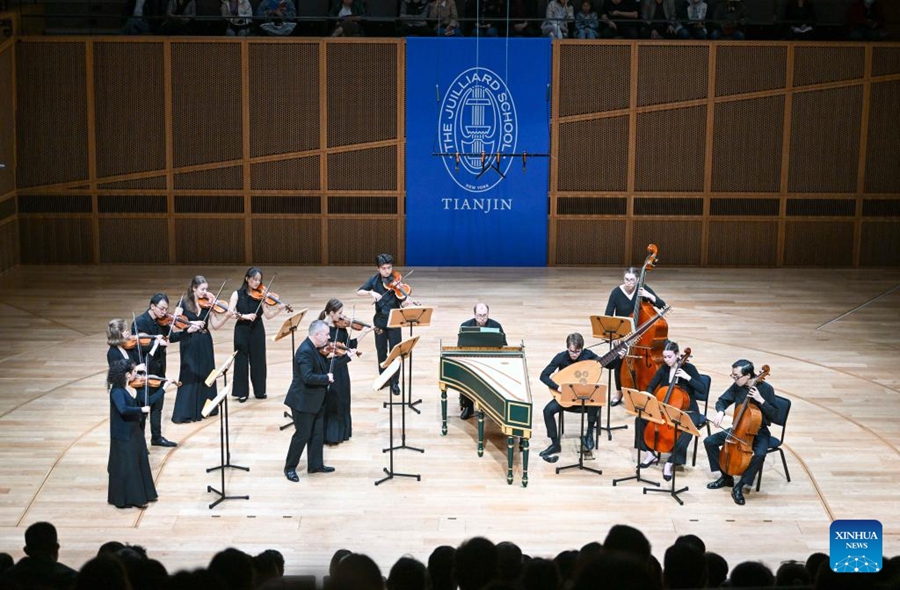 | Juilliard415, ensemble program Persembahan Sejarah Juilliard, membuat persembahan di Sekolah Juilliard Tianjin, utara China, 13 Oktober 2024. (Xinhua/Sun Fanyue) |