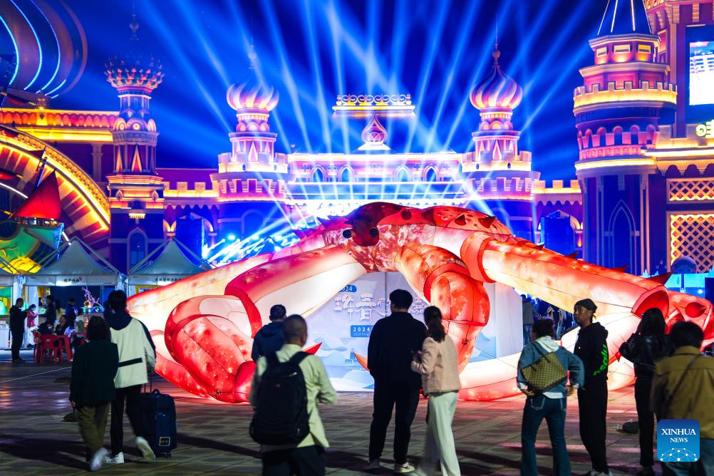 | Pelancong berseronok di karnival bertemakan ketam raja di Hunchun, Provinsi Jilin, timur laut China, 19 September 2024. (Foto/Xinhua) |