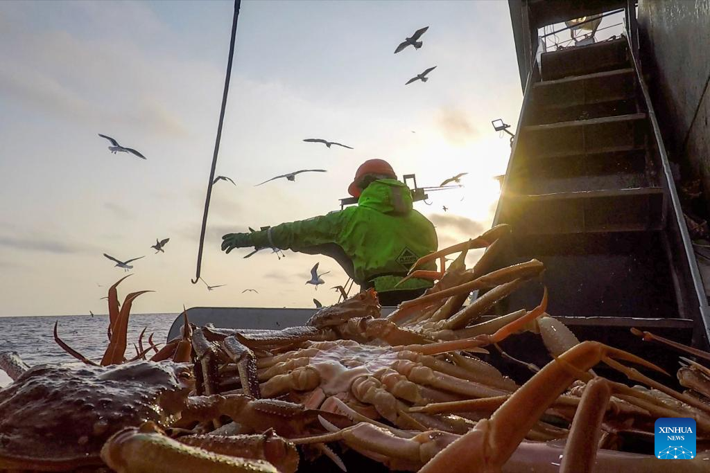 | Foto fail tanpa tarikh ini menunjukkan seorang kakitangan Kumpulan Ketam Rusia sedang memancing di laut dalam. (Foto/Xinhua) |