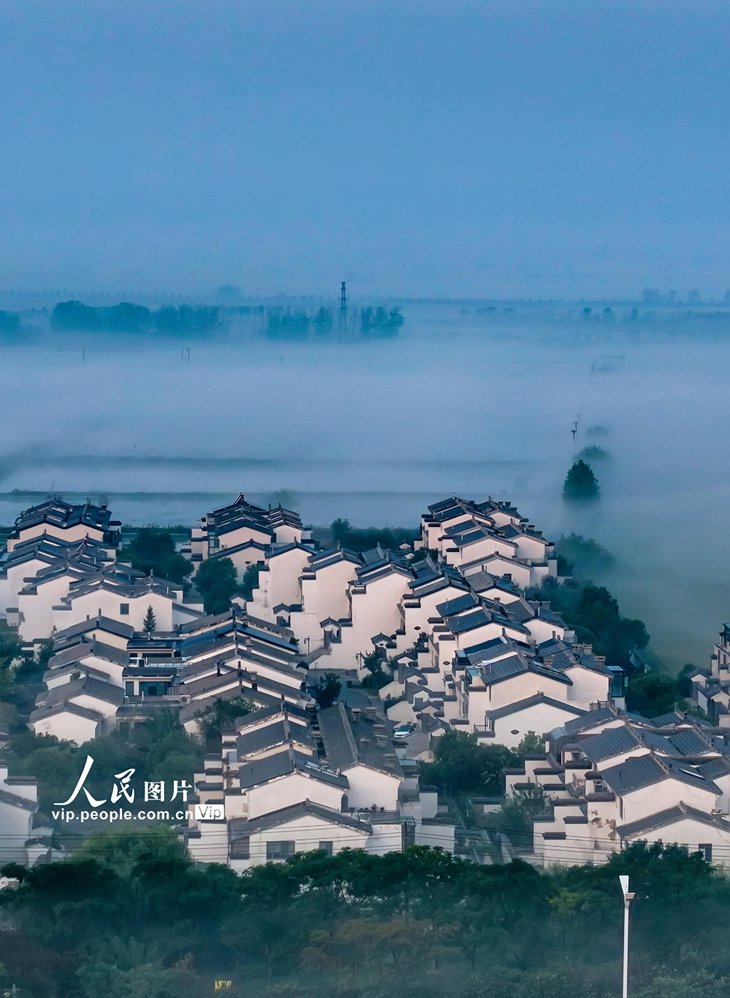 | Foto menunjukkan keindahan pemandangan rumah-rumah kampung di sepanjang Sungai Bianhe di pekan Shiji, kaunti Sihong, provinsi Jiangsu, timur China. (Foto/Chen Yu) |