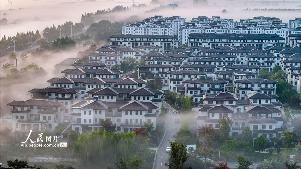 Di pekan Shiji yang terletak di kaunti tersebut, rumah-rumah kampung berdinding putih dan beratap genting hitam diselubungi selimut kabut, pesonanya umpama lukisan dakwat Cina.