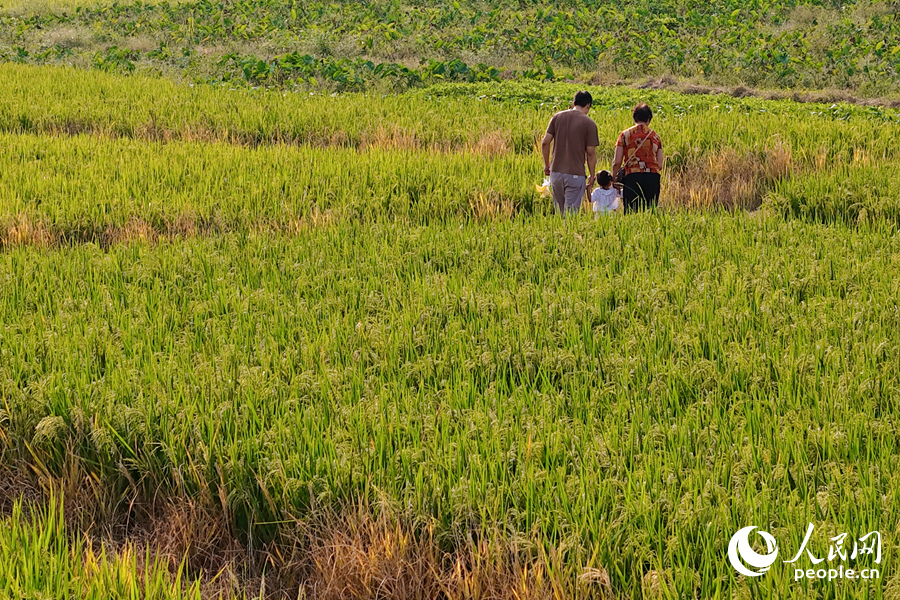 | Pelancong merakam detik indah ketika berjalan di sawah padi di kampung Tiantou, daerah Jimei, bandar Xiamen, Provinsi Fujian, tenggara China. (People’s Daily Online/Chen Bo) |