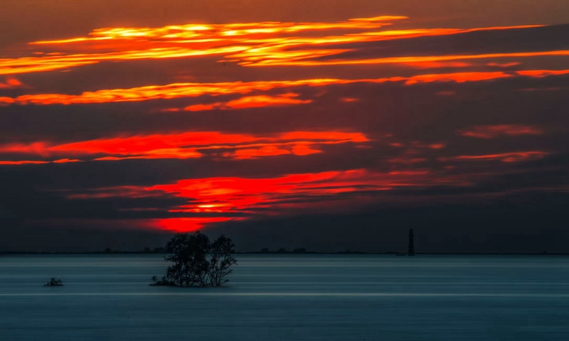 | Foto ini merakamkan matahari terbenam di atas Tasik Dongting. (Foto/Tang Xiaohua) |