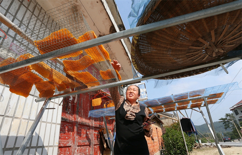 | Foto ini menggambarkan musim menuai apabila tanaman dihamparkan sehingga kering. (Foto/Li Binbin) |