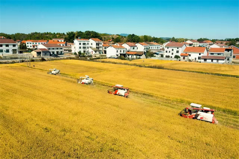 | Foto ini menunjukkan hasil tuaian padi lewat musim yang melimpah di Koperasi Jentera Pertanian Xidong di daerah Yueyang. (Foto/Xu Weijun) |
