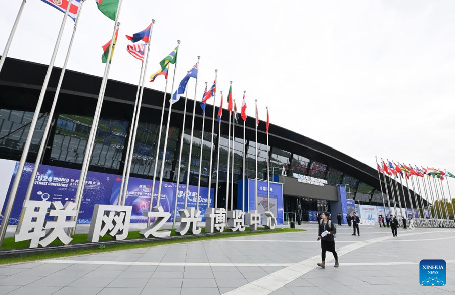 | Foto ini memaparkan bahagian luar venue Ekspo Cahaya Internet. (Xinhua/Huang Zongzhi) |