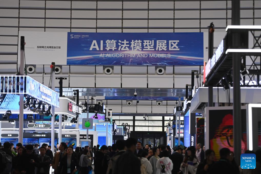 | Foto ini menunjukkan orang ramai melawat Ekspo Cahaya Internet. (Xinhua/Huang Zongzhi) |