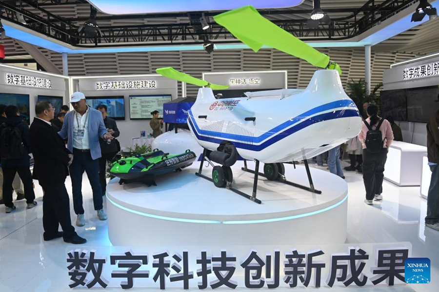 | Foto ini menunjukkan pengunjung sedang meninjau kenderaan udara penumpang autonomi. (Xinhua/Huang Zongzhi) |