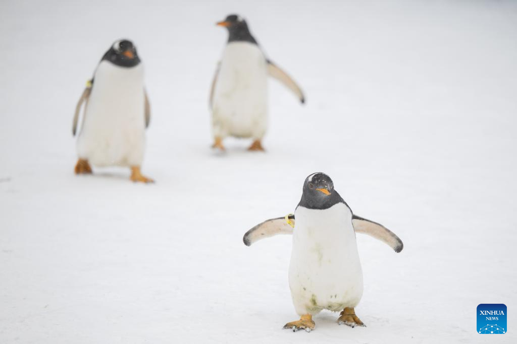 | Gelagat penguin yang sedang berarak. (Foto/Zhang Tao) |