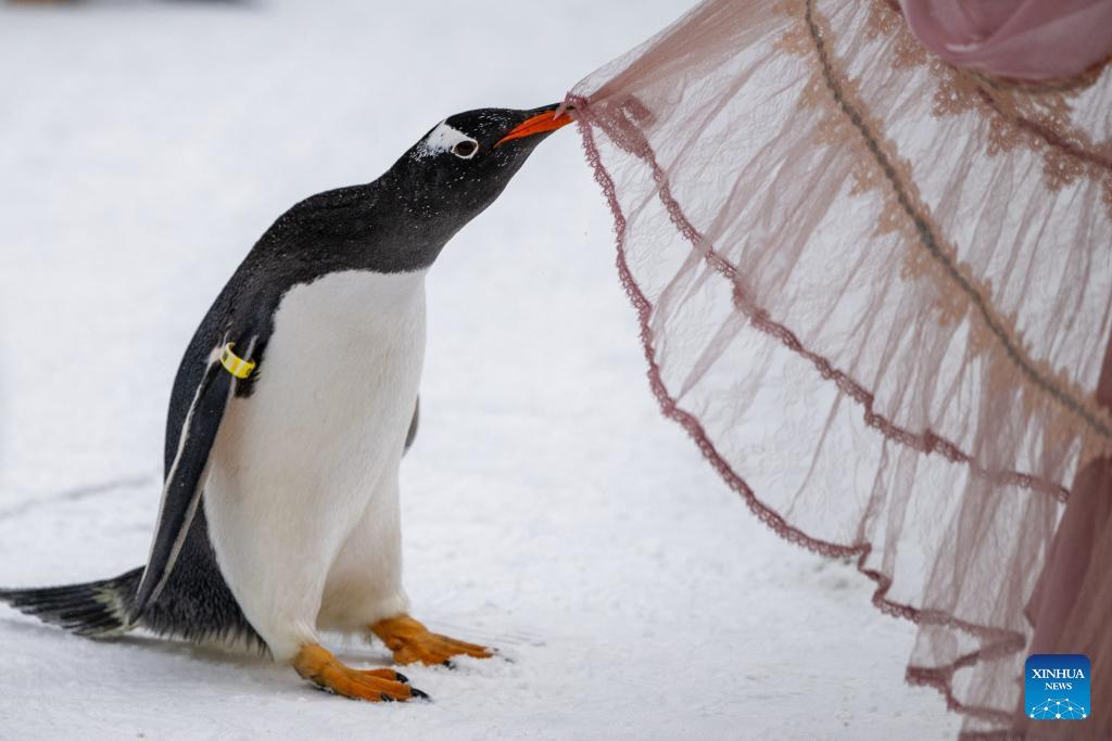 | Penguin sedang berinteraksi dengan pelancong. (Foto/Zhang Tao) |