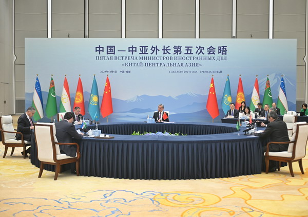Menteri Luar China Wang Yi mempengerusikan Mesyuarat Menteri Luar China-Asia Tengah edisi kelima di Chengdu, barat daya China pada Ahad.