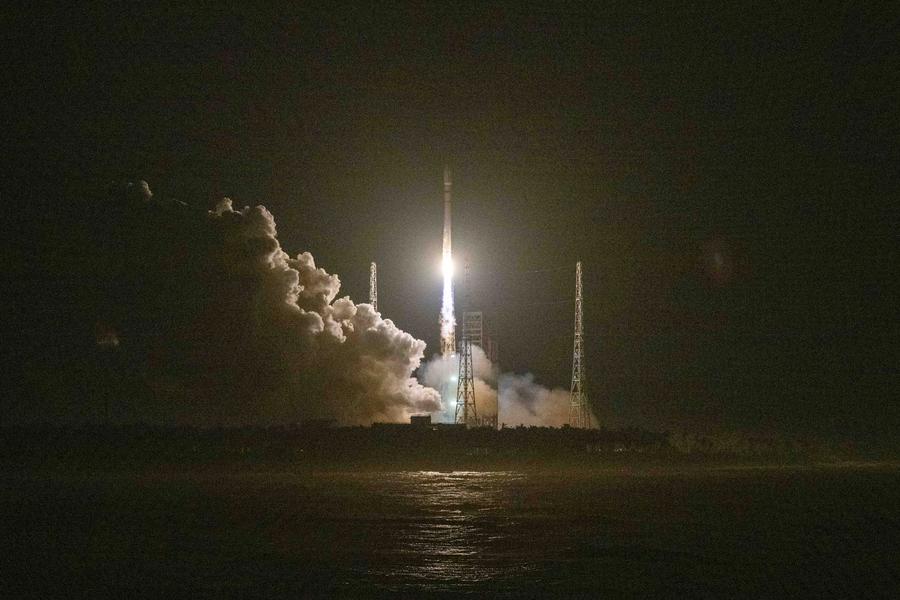 | Sebuah roket Long March-12 membawa dua satelit eksperimen berlepas dari tapak pelancaran kapal angkasa komersial Hainan, Wenchang, provinsi Hainan, selatan China, 30 November 2024. (Xinhua/Pu Xiaoxu) |