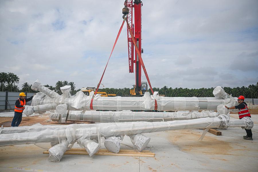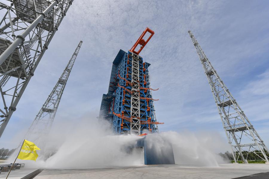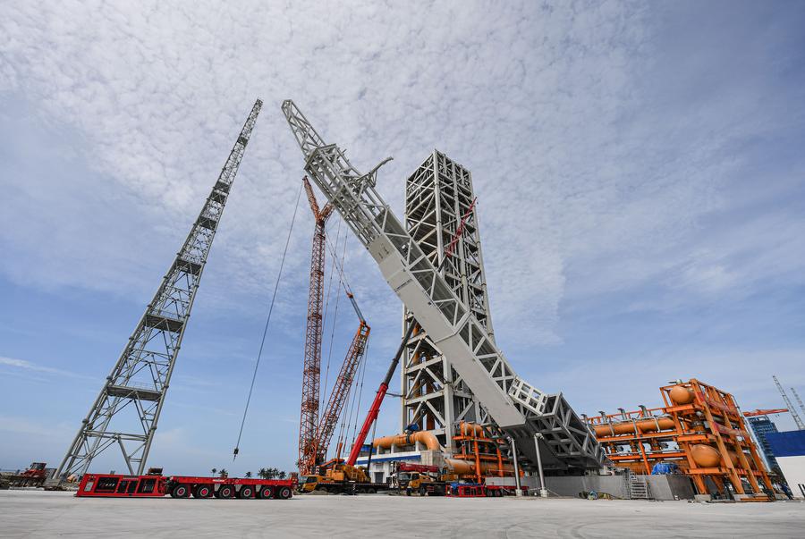 | Foto bertarikh 30 Jun 2024 ini menunjukkan raptai simulasi pelancaran roket di tapak pelancaran kapal angkasa komersial Hainan, Wenchang, provinsi Hainan, selatan China. (Xinhua/Pu Xiaoxu) |