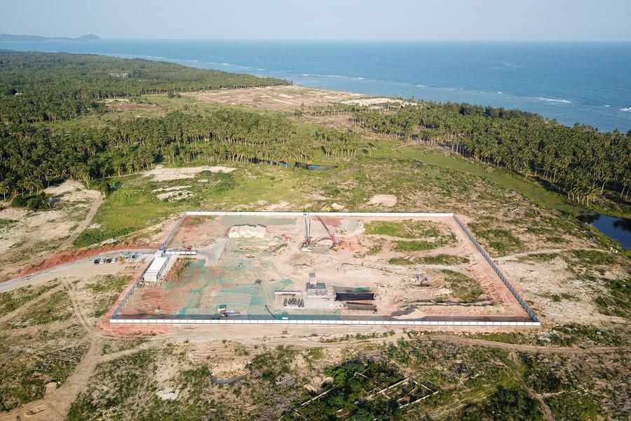 | Foto dron bertarikh 28 Disember 2022 ini menunjukkan landas No. 2 tapak pelancaran kapal angkasa komersial Hainan sedang dibina di Wenchang, provinsi Hainan, selatan China. (Xinhua/Pu Xiaoxu) |