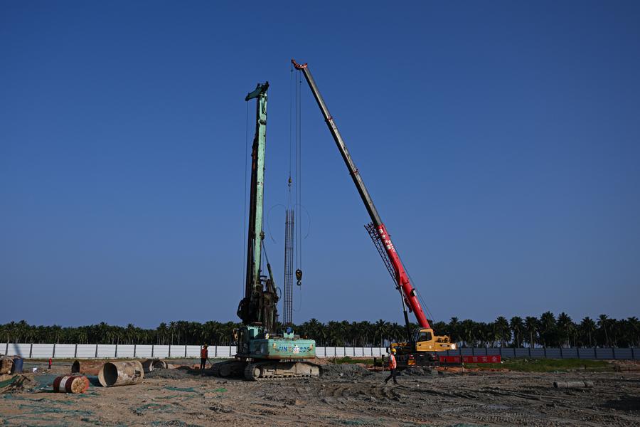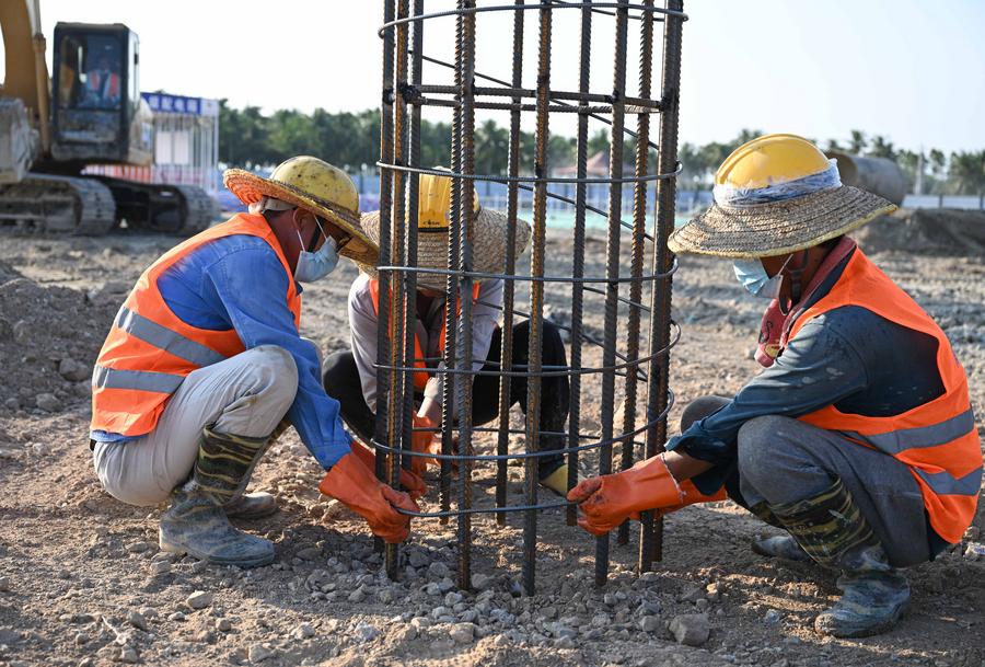 | Pekerja menjalankan tugas-tugas pembinaan di landas No. 1 tapak pelancaran kapal angkasa komersial Hainan, Wenchang, provinsi Hainan, selatan China, 17 September 2022. (Xinhua/Pu Xiaoxu) |