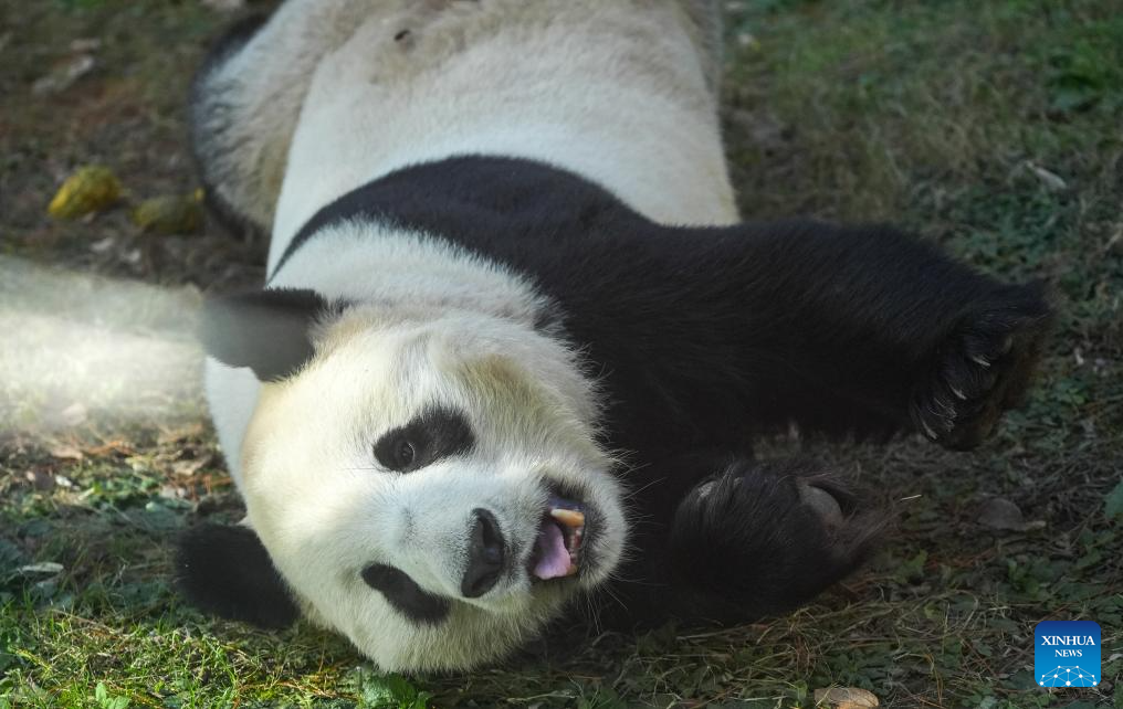 | Panda gergasi Fu Bao menggeliat di sebuah zoo hidupan liar di resort pelancong Tangshan, Nanjing, provinsi Jiangsu, timur China, 1 Disember 2024. Tujuh ekor panda, yang kesemuanya dari Pusat Pemuliharaan dan Penyelidikan Panda Gergasi China, menjadi tumpuan ribuan biji mata ketika menikmati makanan dan cahaya matahari pada hari yang panas musim sejuk ini. (Xinhua/Yang Lei) |