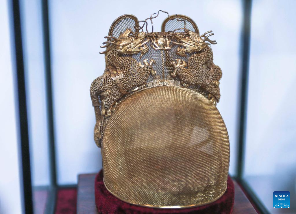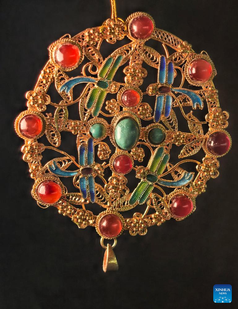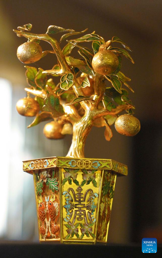 | Karya seni Mozek Filigri purba dipamerkan di studio Dong Ruijing di Beijing, ibu negara China, 3 Disember 2024. (Xinhua/Zhu Weixi) |